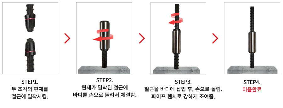 ROC-S1은 철근 단부의 가공없이 현장에서 간편하게 체결을 하는 제품으로 ‘잔류변형량 0.3mm이내’의 기준을 충족합니다.